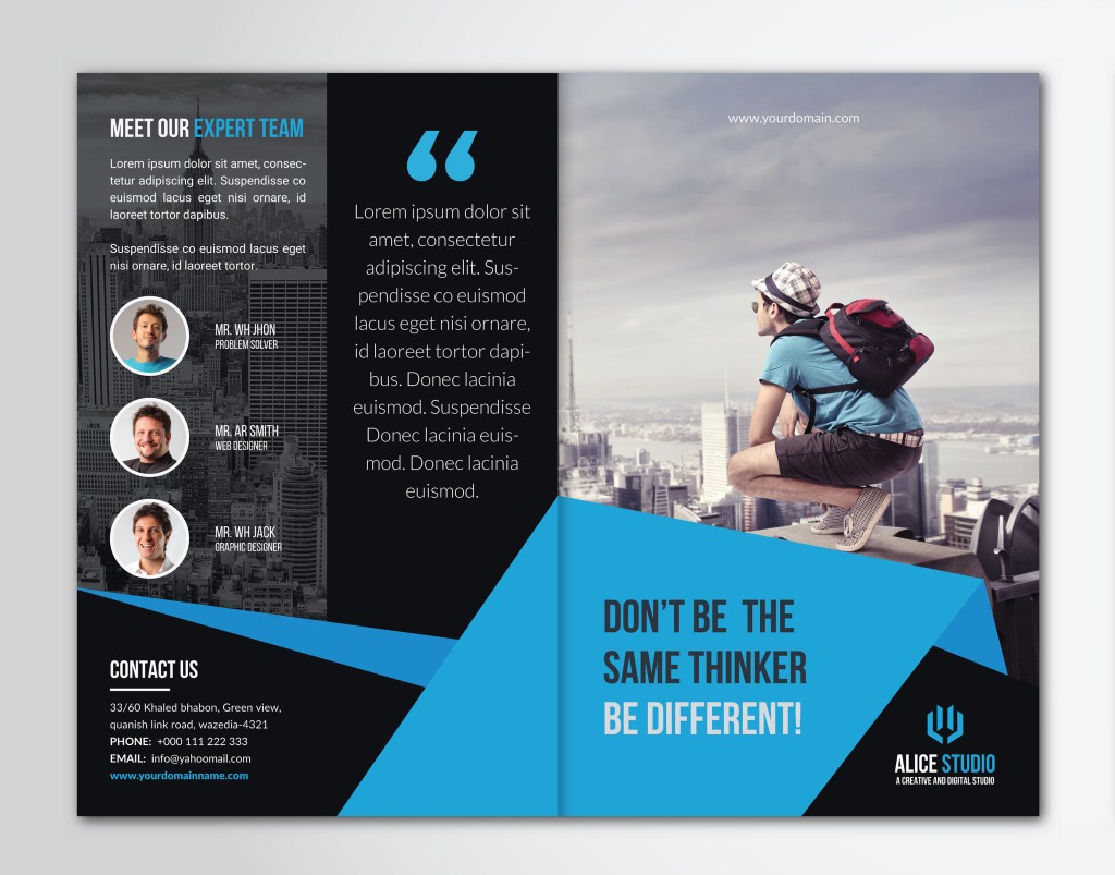 Kami menerima jasa desain Lipat 2/ Bi-Fold untuk berbagai keperluan seperti : tour and travel, kuliner, agent property dan lainnya.