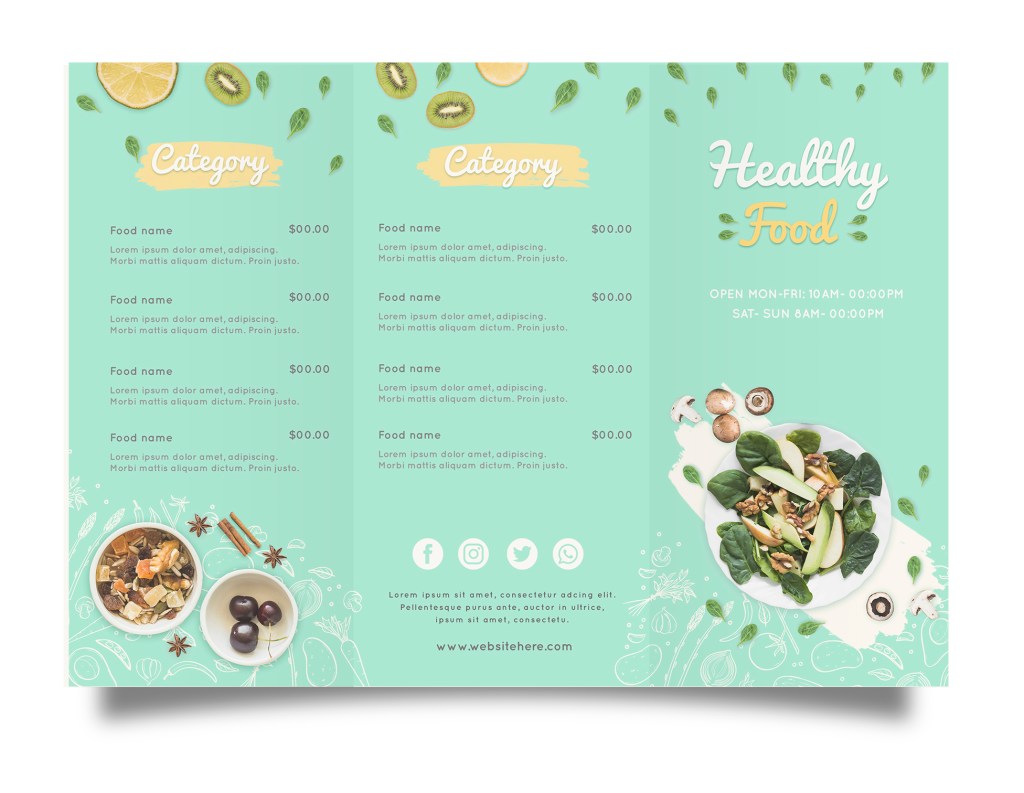 Kami menerima jasa desain Lipat 3/ Tri-Fold untuk berbagai keperluan seperti : tour and travel, kuliner, agent property dan lainnya.
